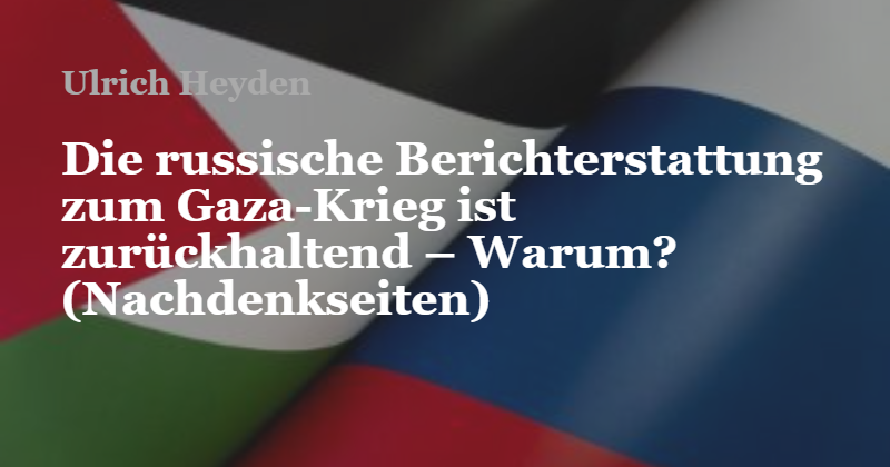 Möglicherweise gibt es unter den russischen Medien-Machern auch die Hoffnung, dass sich in den westlichen Ländern, die Netanjahu unterstützen, eine breite Widerstandsfront aufbaut, und eine starke russische Stimme zum Thema Genozid in Gaza gar nicht nötig ist.