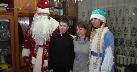 Die Leiterin der „Guten Engel“, Jekaterina Mesinowa, hatte die Idee, dass wir Journalisten, verkleidet als „Ded Moros“ (Väterchen Frost) und dessen Gehilfin „Snegurotschka“ (Schneemädchen), dem Flüchtlingskind Denis das Neujahrsgeschenk überreichen. Meine weißrussische Kollegin und ich waren bereit, die Rollen zu übernehmen.