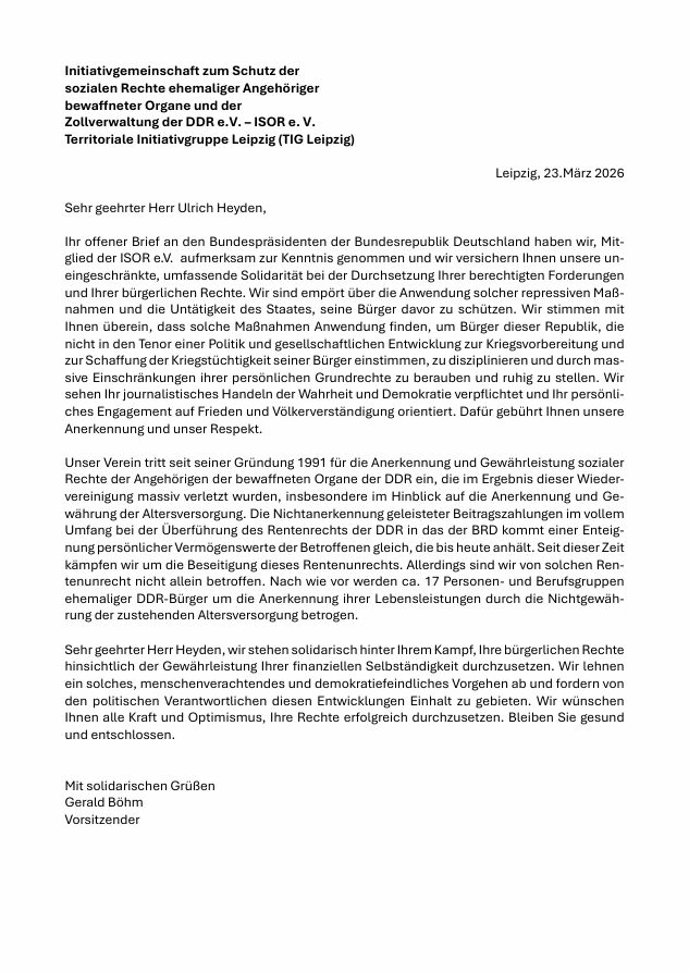 Dass ich einmal einen Solidaritätsbrief von ehemaligen deutschen Zollbeamten und Soldaten bekommen würde, hätte ich noch nicht mal im Traum für möglich gehalten. Doch nun ist so ein Brief bei mir eingetroffen. Was tun? Ihn vor Scham verstecken und so tun, als ob es diesen Brief nicht gibt, oder ihn öffentlich machen? Nun, hier ist er.