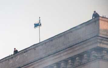 - Wer waren die Leute, die auf dem Dach des Gewerkschaftshauses, von unten leicht erkennbar, Molotow-Cocktails aufgereiht hatten und mindestens eine Flasche auch anzündeten. Augenzeuge Wanja sagt, es seien Leute vom Rechten Sektor gewesen. Stimmt das?