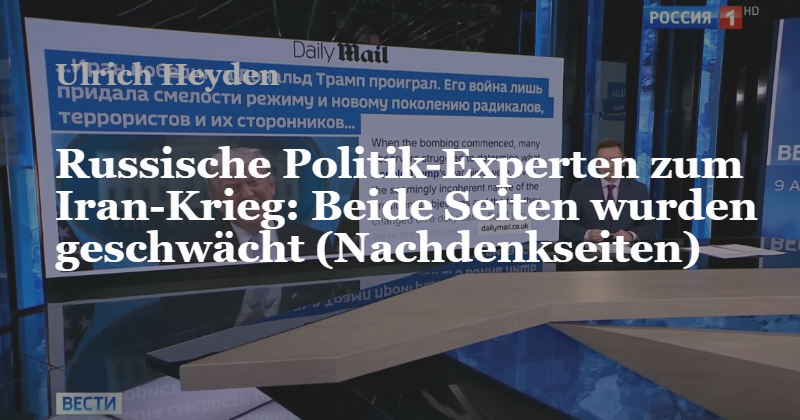 Russische Politik-Experten zum Iran-Krieg: Beide Seiten wurden geschwächt (Nachdenkseiten)
